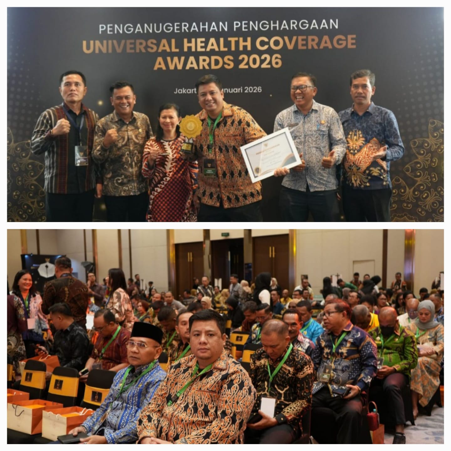 Pada penghargaan UHC yang ketiga ini, tingkat cakupan kepesertaan Kabupaten Samosir mencapai 100% dengan tingkat keaktifan mencapai 85%, meningkat dari tahun 2024 yang lalu dengan cakupan kepesertaan 99,35%. Berkat capaian ini, Bupati Samosir Vandiko Timotius Gultom, ST kembali menerima penghargaan UHC (Universal Health Coverage) kategori Tingkat Madya di JIEXPO Kemayoran Jakarta, Selasa (27/1/2026).