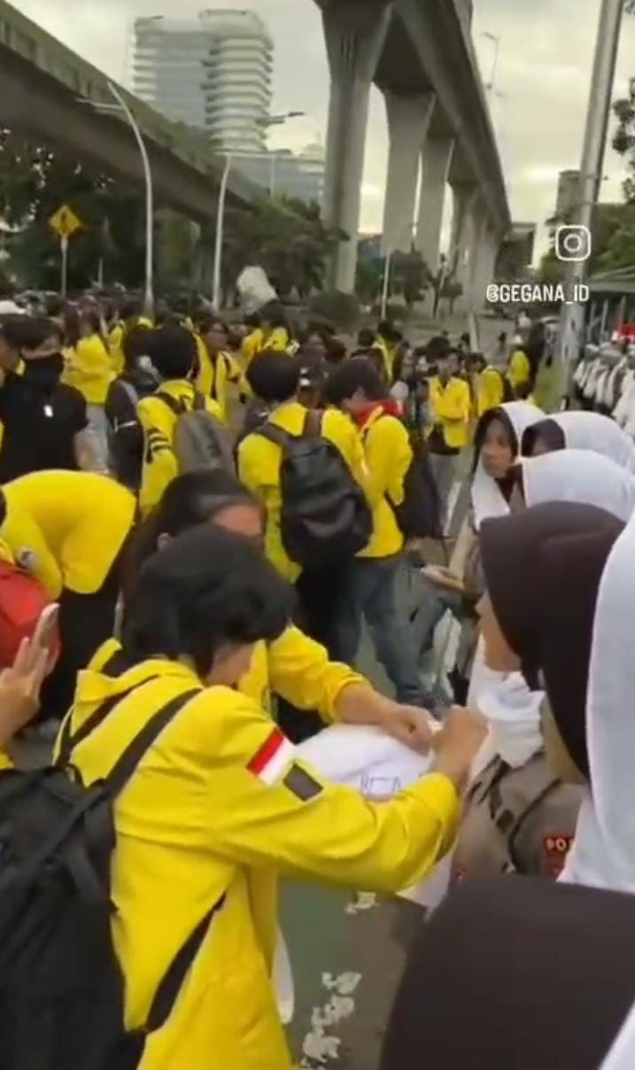 Aksi Penyampaian Pendapat di Mabes Polri, Mahasiswi Berjaket Kuning Ambil dan Coret Kain Penutup Kepala Polwan